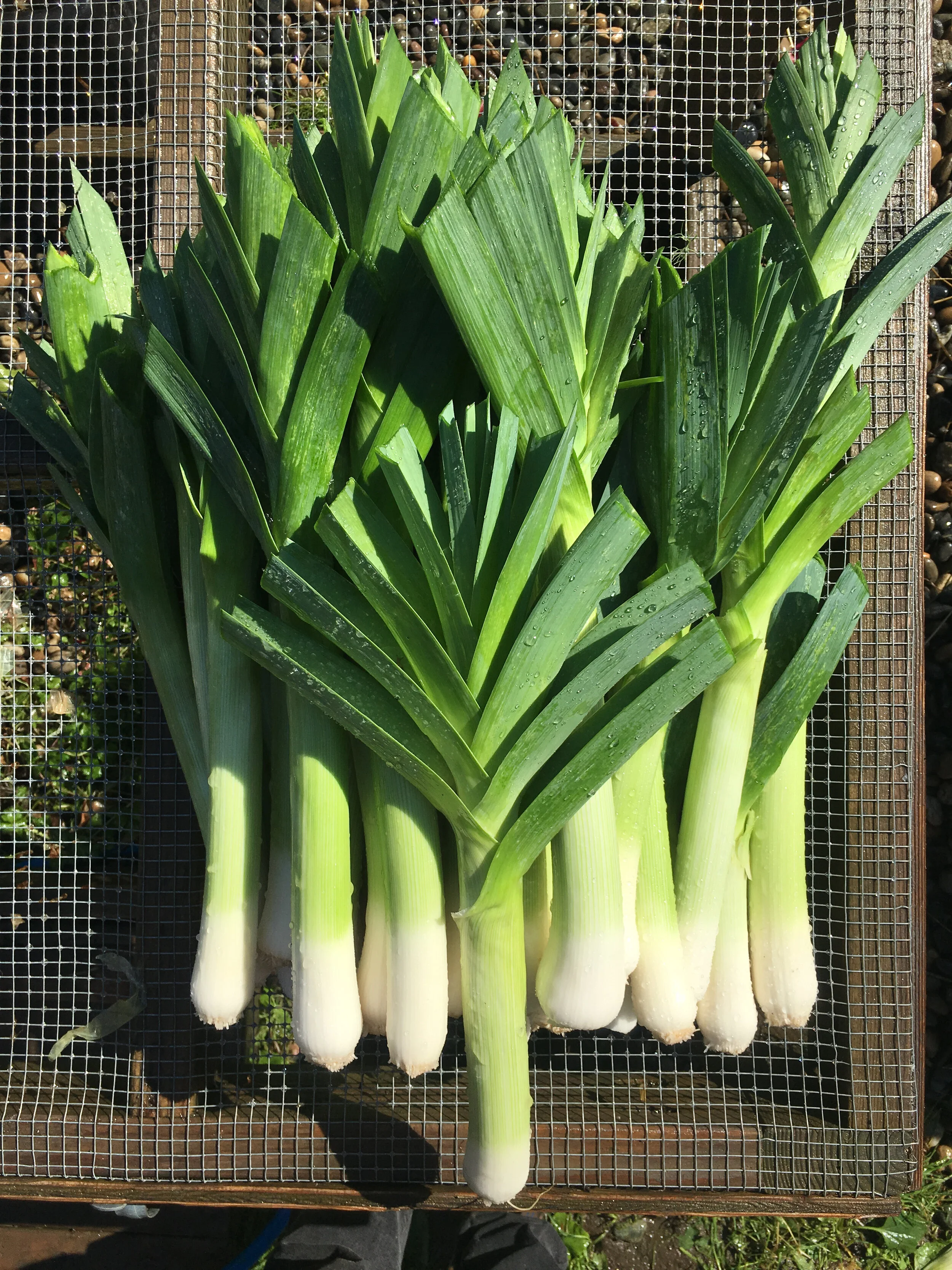 Leeks start in March and finish in September! This super hardy crop can make it through winter weather. These leeks are so good, some of our customers cut them up fresh and eat them raw. We prefer them in roasted potato leek soup. It’s to die for!